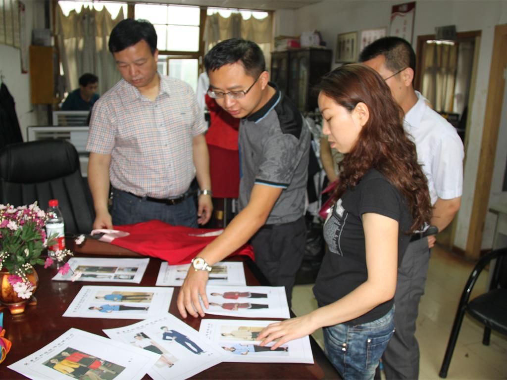 2014年6月20日上午,潼南大酒店總經(jīng)理曾總,辦公室楊主任等領(lǐng)導(dǎo)一行親蒞紅冠服飾就潼南大酒店全體員工工裝換裝事宜進(jìn)行實地考查,在公司總經(jīng)李紅兵,設(shè)計部經(jīng)理李成靜熱情接待下,對公司樣品展廳,生產(chǎn)車間進(jìn)行了考查。